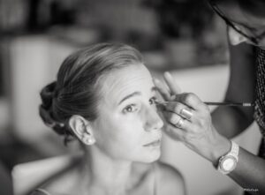 Dans le calme de votre lieu de préparation, je m’invite avec mes pinceaux, mon fer à boucler… et toute mon attention.